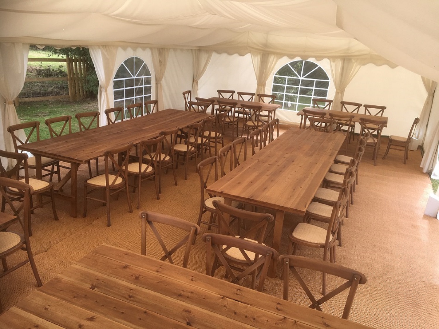 Rustic Furniture Products Enquire About Rustic Furniture Rustic Furniture Hire For Events & Weddings Cross Back Chairs These stylish chairs with rustic feel about them. Made from solid wood with built in rattan seat pad.Ideal for Weddings, Garden parties etcWe have had them made in the same colour as our Heavy Rustic tables. 3.80 One Off delivery charge for total order (click for delivery info) 01245 607 302 Reserve Your Item Heavy Quality Rustic Table and Benches Ideal for Weddings, Garden Parties Bench 13.80 Table 19.20 Table & 2 Benches 42.00 One Off delivery charge for total order (click for delivery info) 01245 607 302 Reserve Your Item